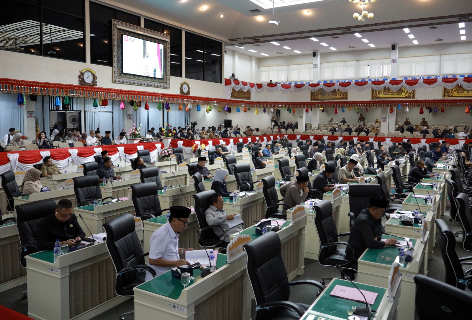 Turut hadir Sekdaprov Lampung Marindo Kurniawan beserta jajaran, unsur pimpinan lain DPRD Lampung seperti Naldi Rinara S Rizal, Maulida Zauroh dan Kostiana, forkopimda serta tamu undangan terkait.