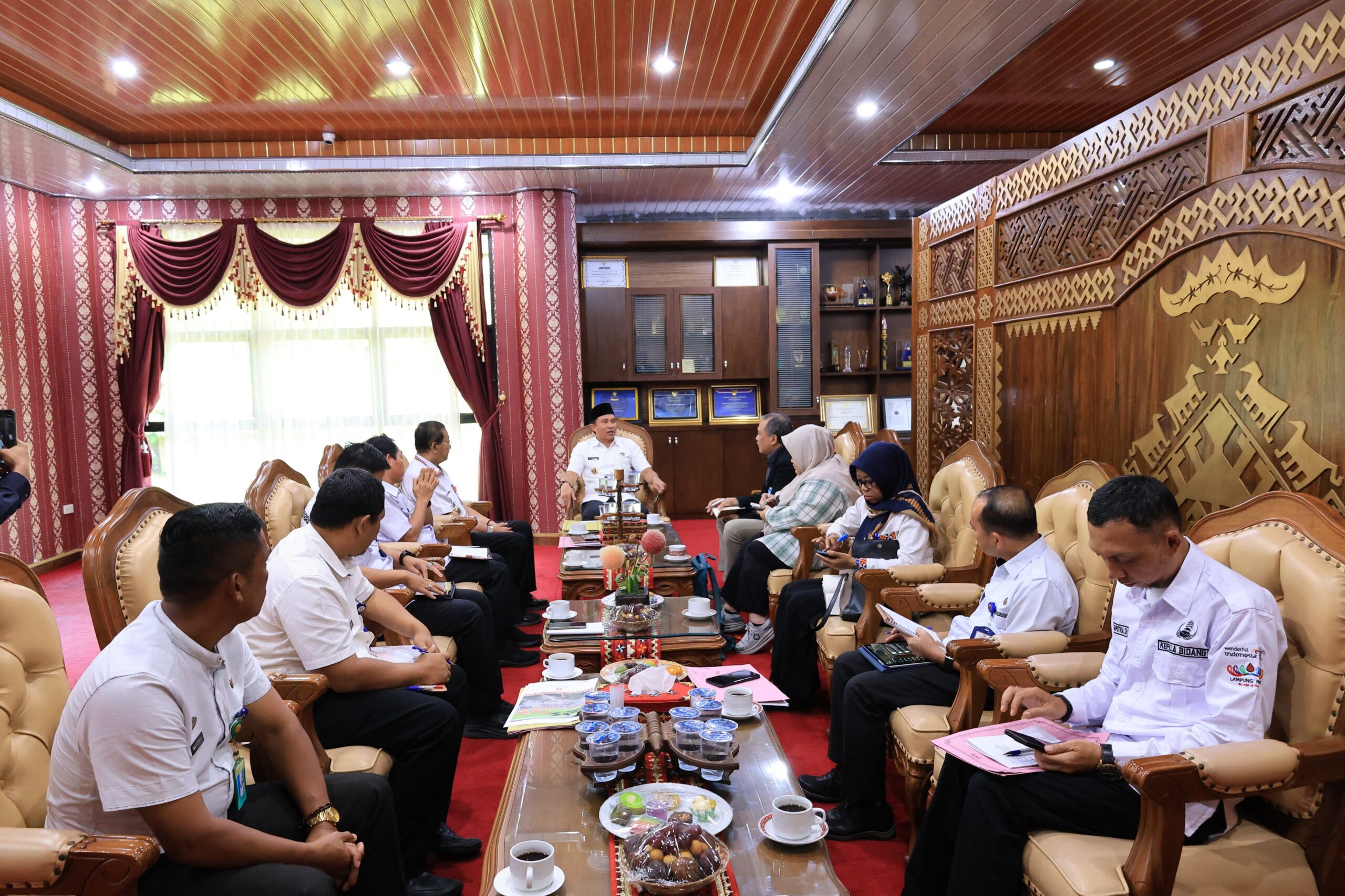 Kehadiran BRIN menemui Pakcik, Bupati Lampung Barat Parosil Mabsus di ruang kerjanya dalam rangka monitoring terkait pengembangan Kawasan Kebun Raya Liwa.
