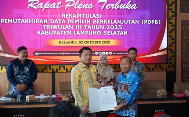 Kalianda, Mediatamanew.com. Komisi Pemilihan Umum (KPU) Kabupaten Lampung Selatan resmi menetapkan jumlah daftar pemilih berkelanjutan Triwulan III Tahun 2025 sebanyak 805.283 jiwa.