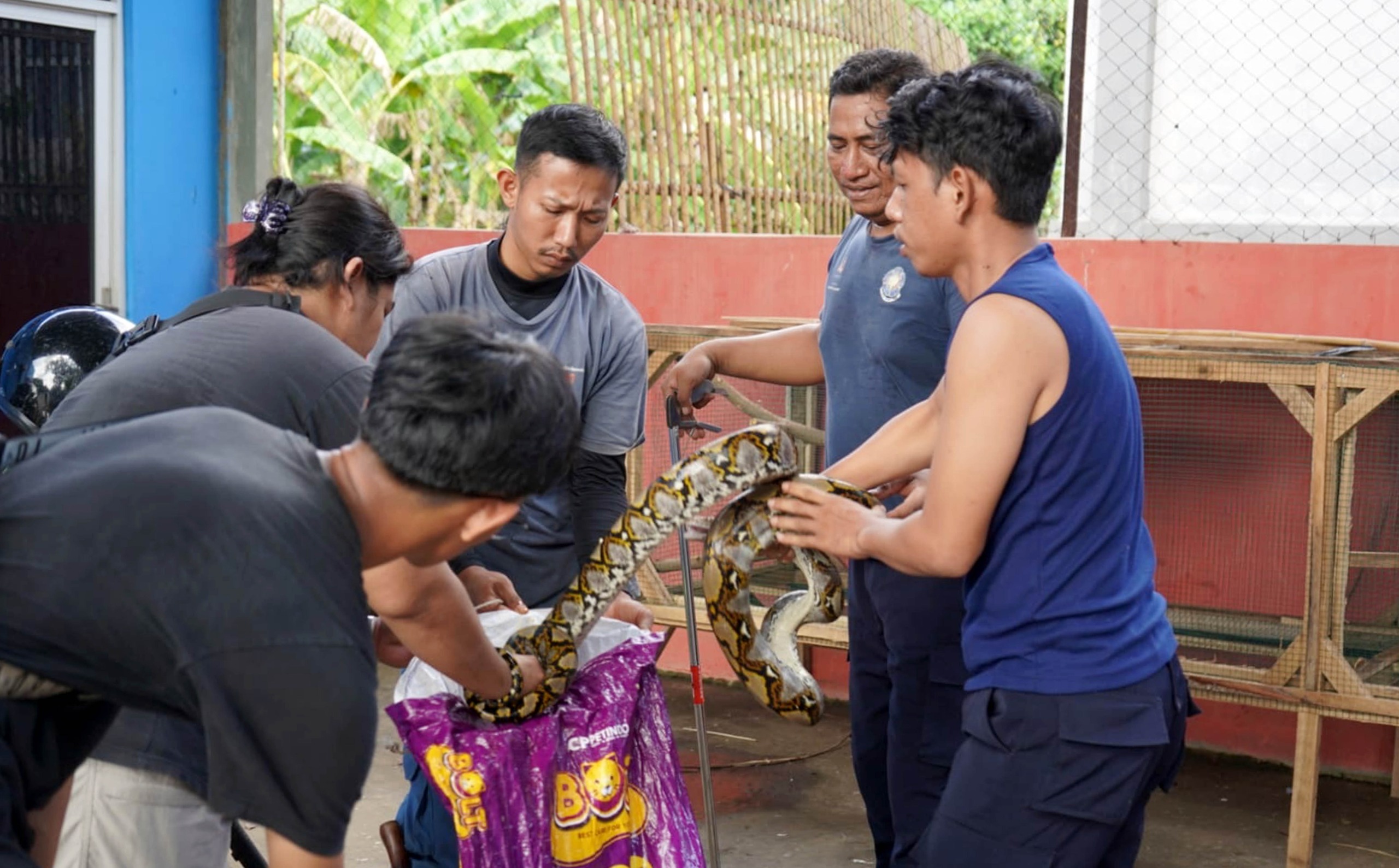 Damkarmat Kabupaten Lampung Selatan Berhasil Amankan Enam Ekor Ular Sanca