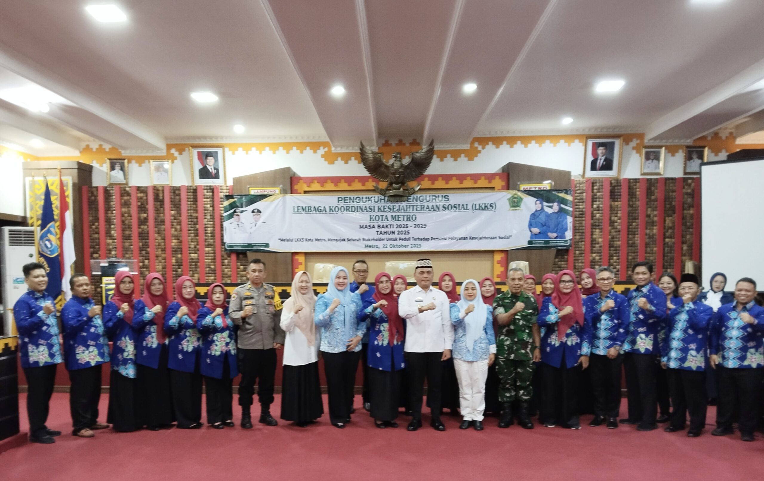 Metro, Mediatamanew.com. Sebanyak 30 Pengurus Lembaga Koordinasi Kesejahteraan Sosial (LKKS) Kota Metro masa bakti 2025–2029 secara resmi dikukuhkan oleh Walikota Metro H.
