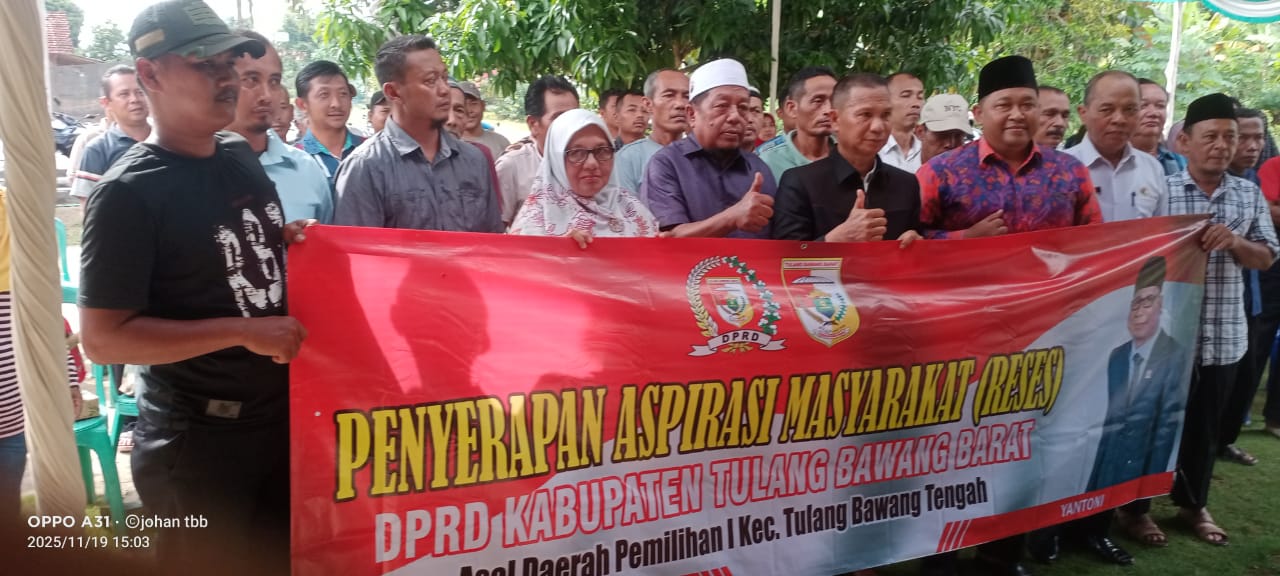 Tulang Bawang Barat – Mediatamanew.com. Anggota Dewan Perwakilan Rakyat Daerah (DPRD) Kabupaten Tulang Bawang Barat (Tubaba), Yantoni, menggelar kegiatan reses atau penyerapan aspirasi pada Daerah Pemilihan (Dapil) I Kecamatan Tulang Bawang Tengah. Kegiatan berlangsung di Tiyuh Panaragan Jaya Indah (PJI), Rabu (19/11/2025) siang.