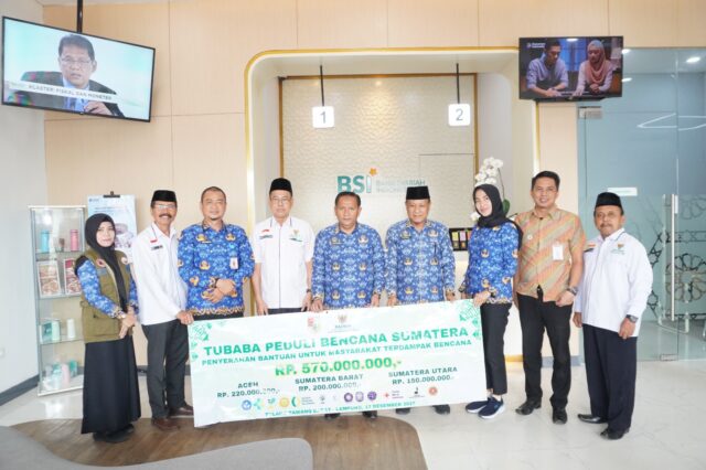 Tulang Bawang Barat, Mediatamanew.com. Pemerintah Kabupaten Tulangbawang Barat (Tubaba), Provinsi Lampung, menyalurkan bantuan kemanusiaan bagi korban banjir bandang dengan total nilai sebesar Rp574 juta. Penyaluran bantuan tersebut dilaksanakan secara simbolis melalui metode transfer menggunakan Bank Syariah Indonesia (BSI) Unit Daya Murni, Tubaba, Rabu (17/12/2025).
