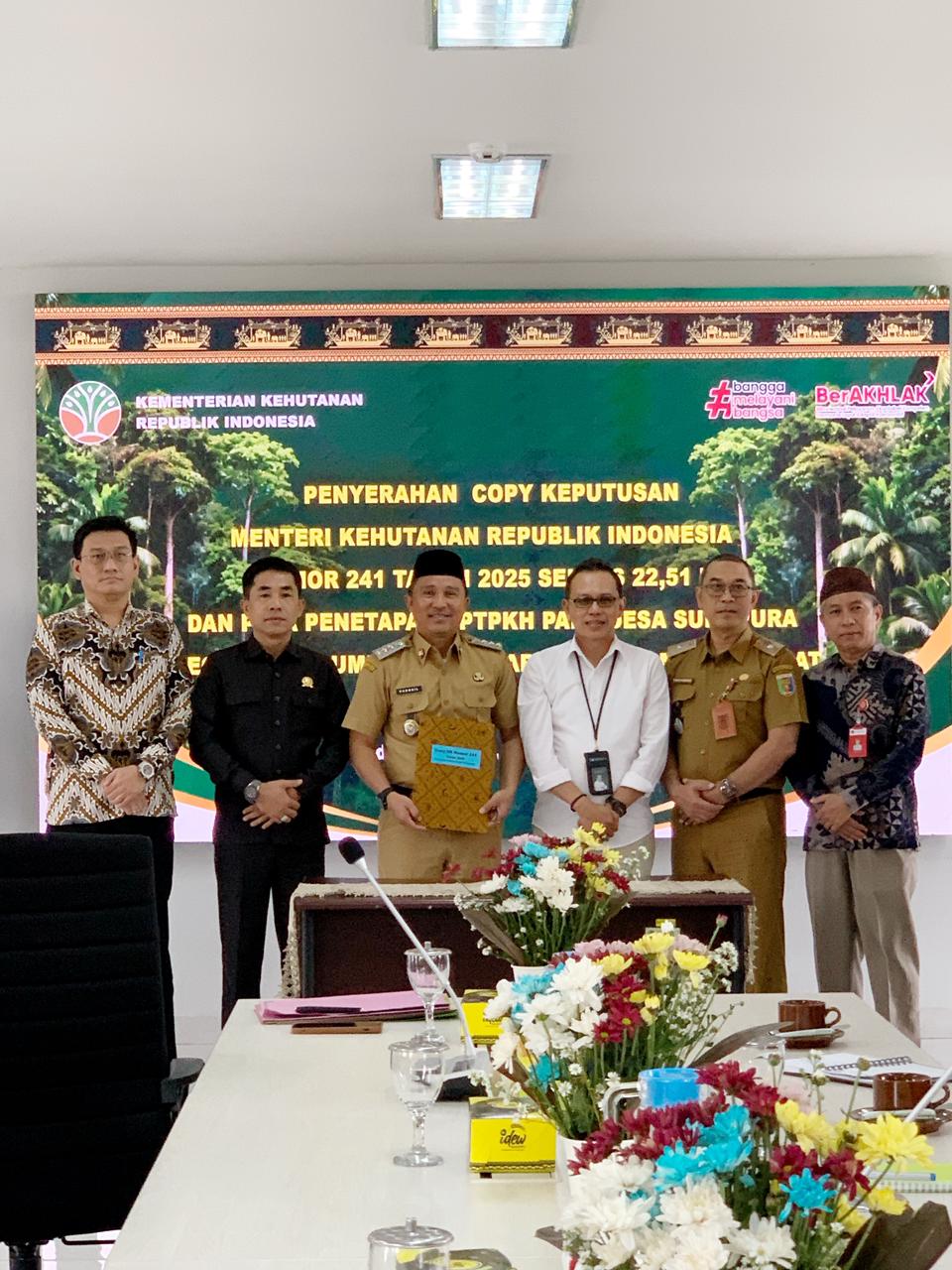 LAMPUNG BARAT, Mediatamanew. com. Pemerinntah Kabupaten Lampung Barat menerima salinan Keputusan Menteri Kehutanan Republik Indonesia Nomor 241 Tahun 2025 tentang penetapan batas areal pelepasan sebagian kawasan hutan produksi tetap, dalam rangka penyelesaian penguasaan tanah pada kawasan hutan (PPTPKH) Provinsi Lampung Tahap I untuk sumber objek reforma agraria (TORA).