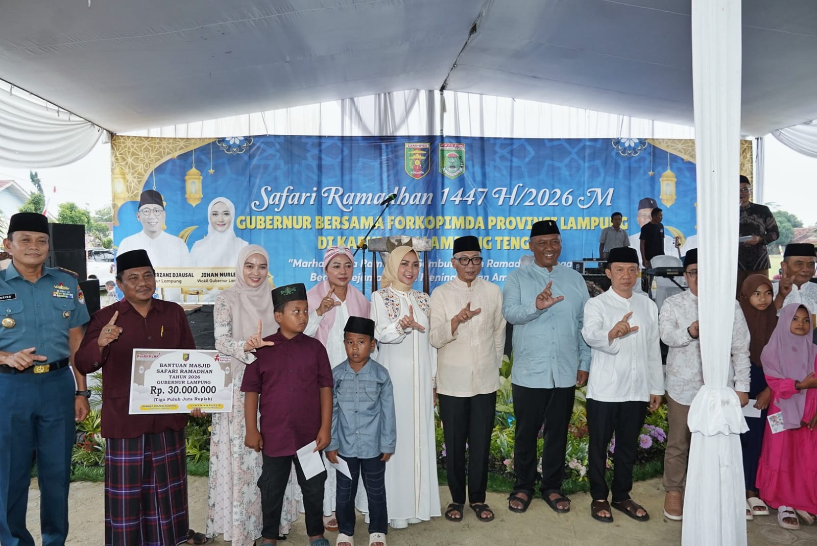 Lampung Tengah — Pemerintah Provinsi Lampung menggelar Safari Ramadan 1447 Hijriah/2026 Masehi bersama masyarakat di Masjid At-Taqwa, Kampung Onoharjo, Terbanggi Besar, Kabupaten Lampung Tengah, Senin (23/2/2026). Kegiatan tersebut dipimpin langsung Gubernur Lampung, Rahmat Mirzani Djausal, dan didampingi Pelaksana Tugas (Plt) Bupati Lampung Tengah, I Komang Koheri.