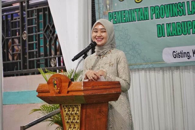 Tanggamus —- Wakil Gubernur Jihan Nurlela menegaskan komitmen Pemerintah Provinsi Lampung dalam mempercepat pembangunan infrastruktur jalan di Kabupaten Tanggamus. Hal tersebut disampaikannya saat Safari Ramadan 1447 H yang digelar Pemerintah Provinsi Lampung di Masjid Jami Hidayatul Muttaqien, Gisting, Kamis (26/2/2026).