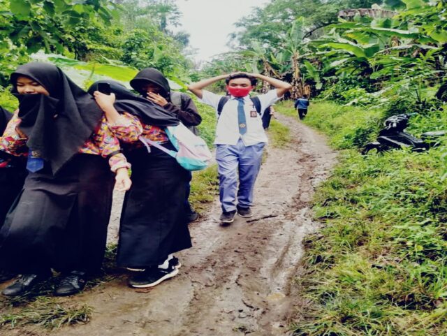 Kerusakan jalan itu selain menghambat aktivitas siswa dan masyarakat bahkan rawan kecelakaan bagi siswa saat pulang pergi ke sekolah.