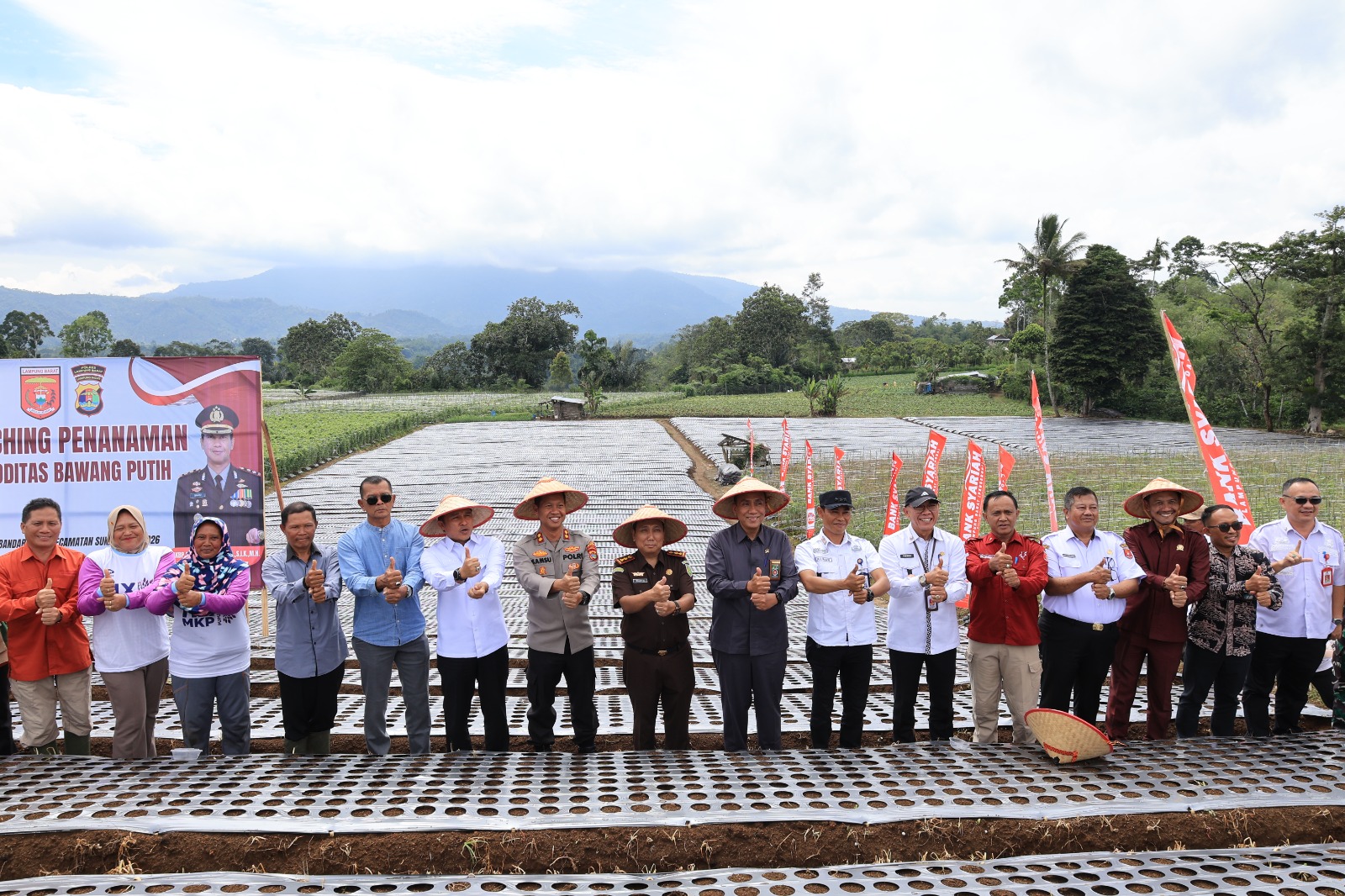 Dimulainya pengembangan bawang putih, penanaman pertama dilakukan langsung oleh Bupati Lampung Barat, Parosil Mabsus bersama Forum Koordinasi Pimpinan Daerah (Forkopimda) di lahan bapak Imbuh, salah satu petani Pekon Bandar Baru, Kecamatan Sukau, (15/04/2026).