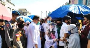 Didampingi Walikota Metro, Wagub Lampung Bagikan Masker Untuk Pedagang Pasar Metro