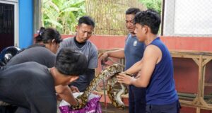 Damkarmat Kabupaten Lampung Selatan Berhasil Amankan Enam Ekor Ular Sanca
