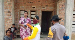 Eko Haryono Kepala Tiyuh Balam Asri Melakukan Penyemprotan Pembuatan Posko dan...