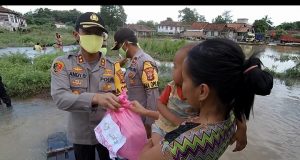 Polres Tulang Bawang Bersama PC Bhayangkari Berbagi Dengan Warga Terdampak Banjir