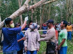Polsek Penawartama Identifikasi Penemuan Mayat Tergantung di Pohon Karet