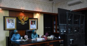 Kornelia Umar Mengikuti Rapat Melalui Vicon Dengan Ketua TP-PKK Provinsi Lampung...
