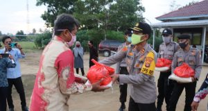 Kapolres Tulang Bawang Bagikan 343 Paket Sembako Untuk Warga